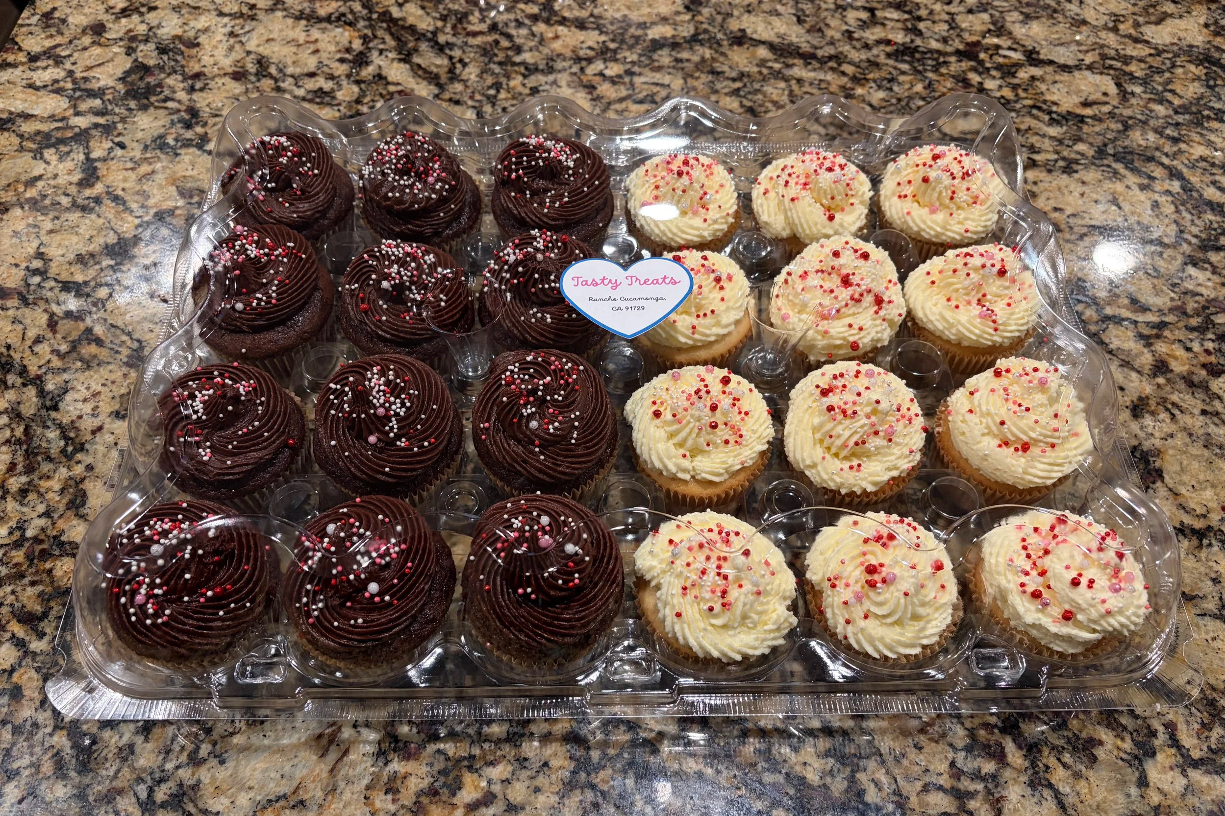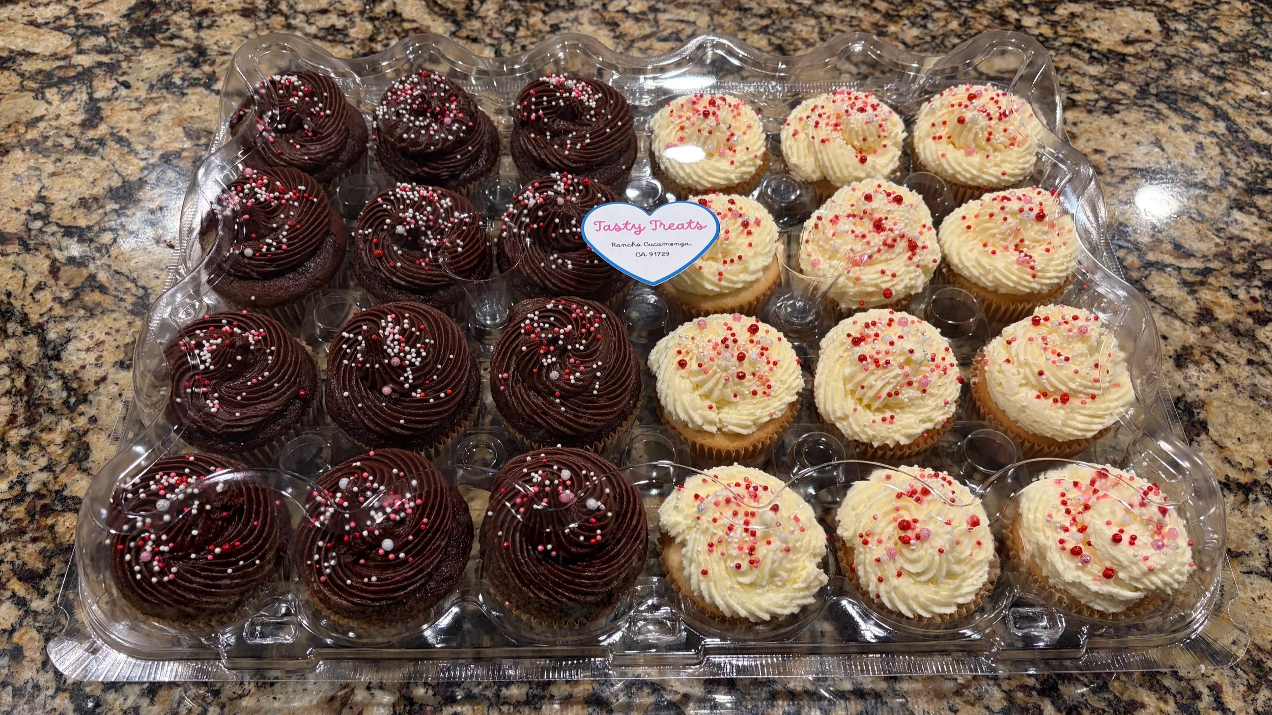 The cupcake platter has two dozen (qty 24) cupcakes, in your choice of cake flavor and icing.