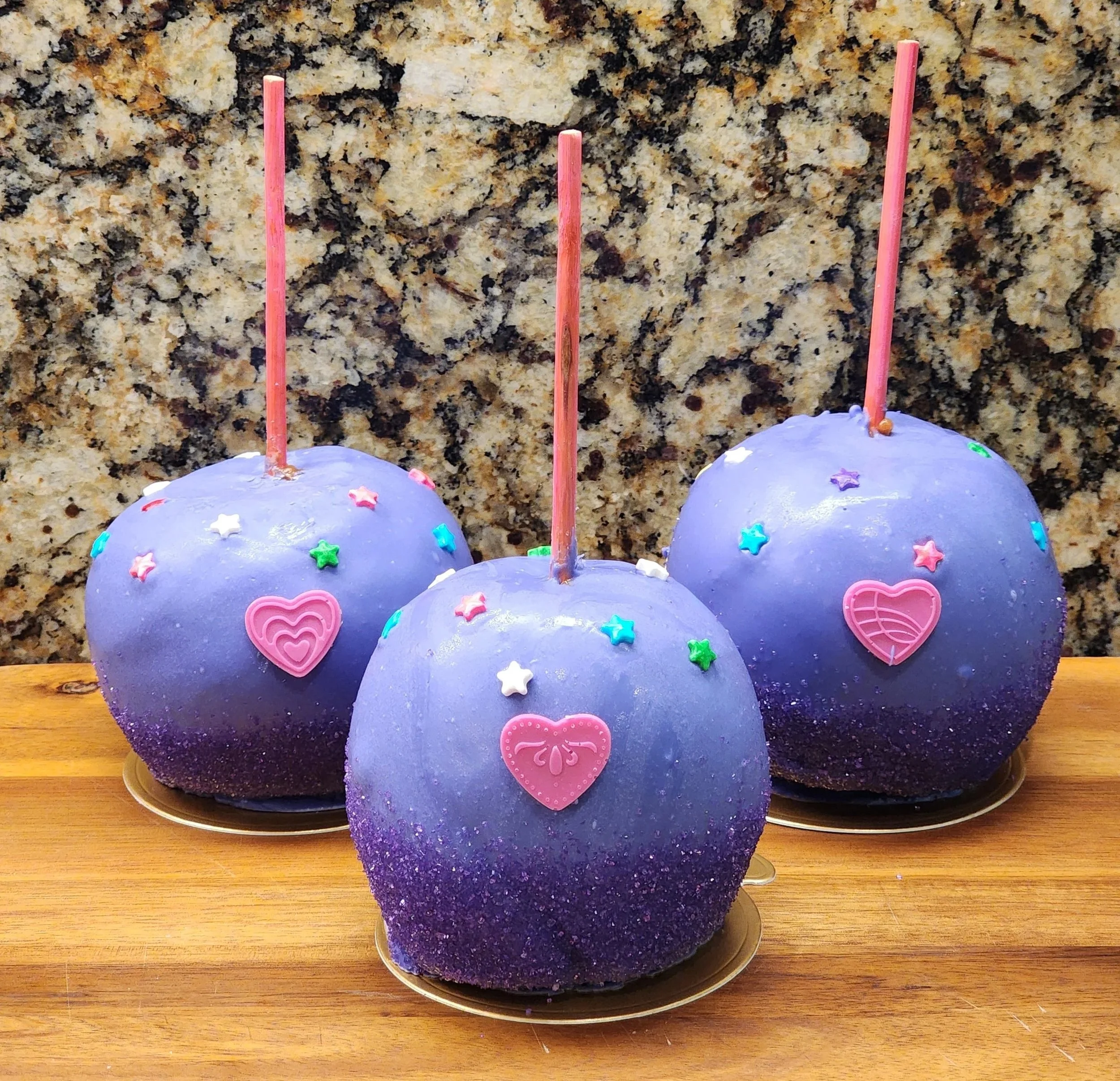 Our capples are available year-round and made to order, so you can taste the freshness. When you're craving a capple, look for the pink stick. If it doesn’t have a pink stick, then it’s not a Tasty Treats Capples.